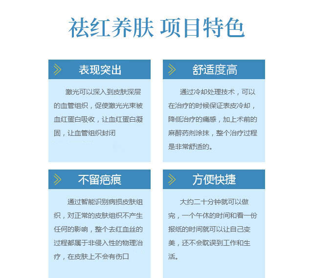 阳光进口的美国脉冲染料激光,对红色素、血管型皮肤病、痤疮等“红”类皮肤病有较好的治疗表现。