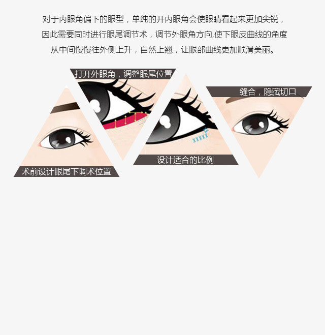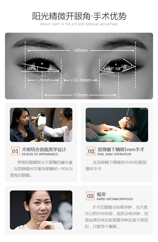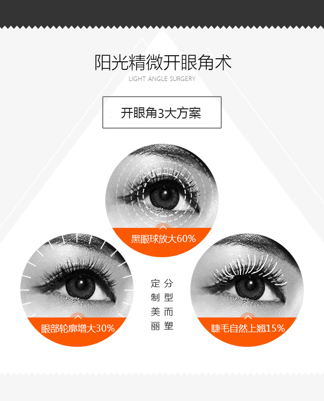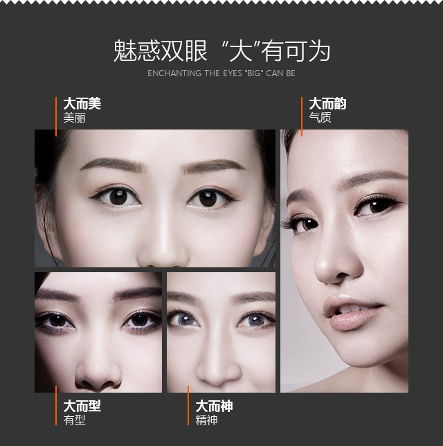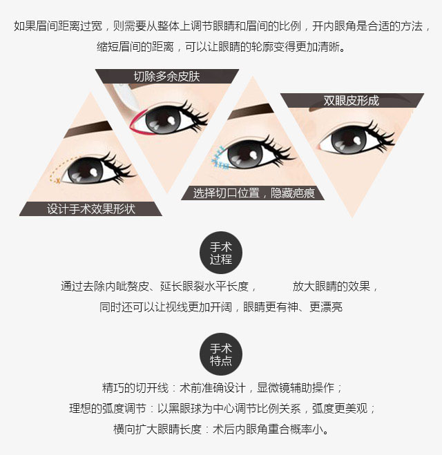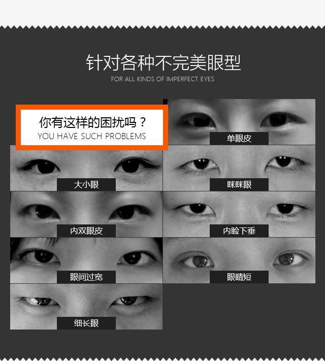 眼裂太窄,内眦距过宽,眼睛高度不够、蒙古褶皱等眼部瑕疵。