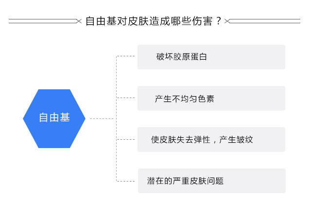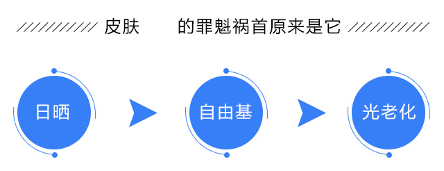 由于长期受到日光的照射,使得紫外线的损害增加,体内的自由基累计性增加,造成体内各种大分子的损伤,导致机体皮肤的病变和衰老。所以,光照的是光老化的罪魁祸首,而体内的自由基是光老化的致病主因。