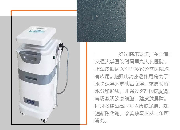 将纯氧高压注入皮肤深层,有效加速细胞新陈代谢,改善缺氧皮肤、杀菌消炎,促进新陈代谢和促进角质层新生。