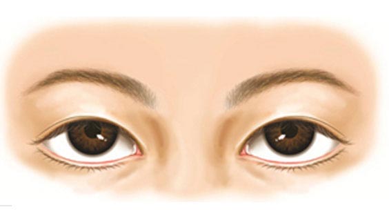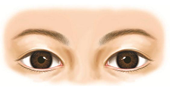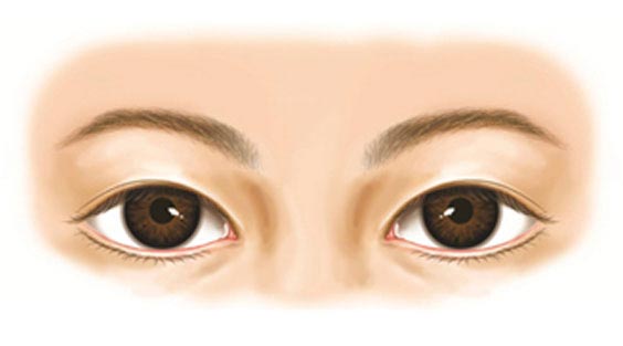 - 2.稍有下垂的眼睛:常见睁眼肌,上眼皮很容易睁开,是外眼皮稍微盖住眼睛的上视眼睑下垂。
