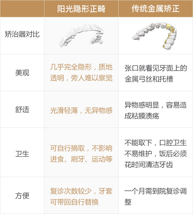 —— 阳光隐形正畸 VS 传统金属矫正 ——